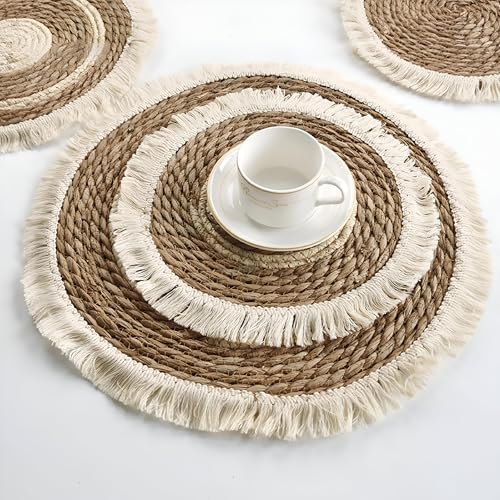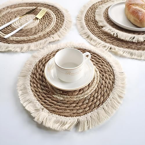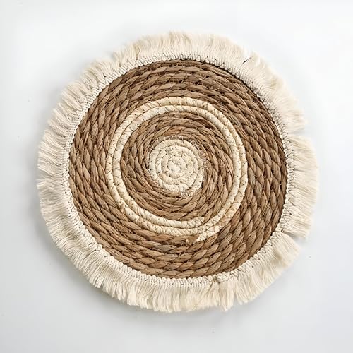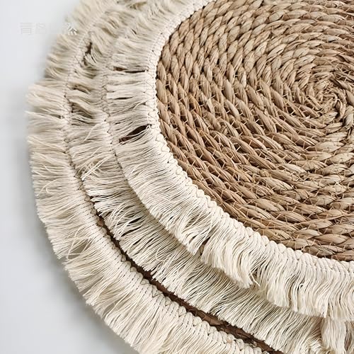 - لا تخدم هذه القواعد والمفارش المستديرة المنسوجة أغراضًا عملية من خلال منع تلف الطاولة فحسب، بل إن تصميمها الأنيق مع الشراشيب يثري ديكور منزلك، مما يخلق بيئة دافئة وجذابة وأنيقة.