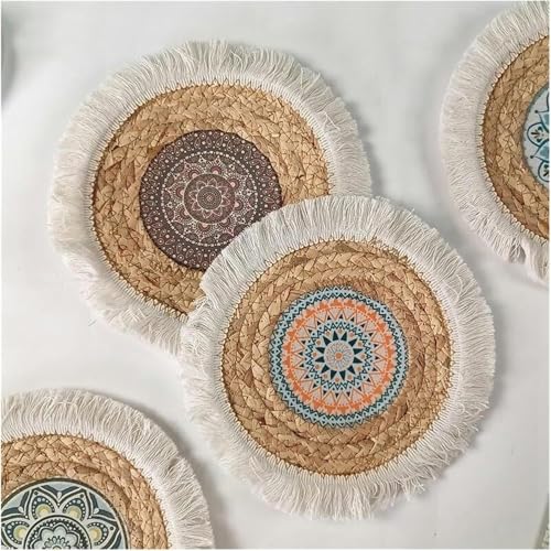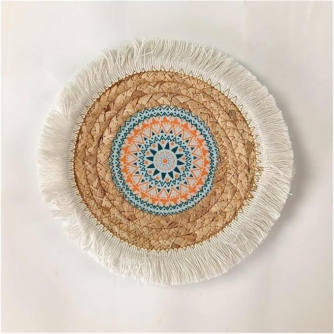 Generic - مفارش منسوجة، مفرش طاولة دائري منسوج بشراشيب مقاس 25 سم، مفرش طاولة من القش المضفر لطاولة الطعام (1.35 سم)