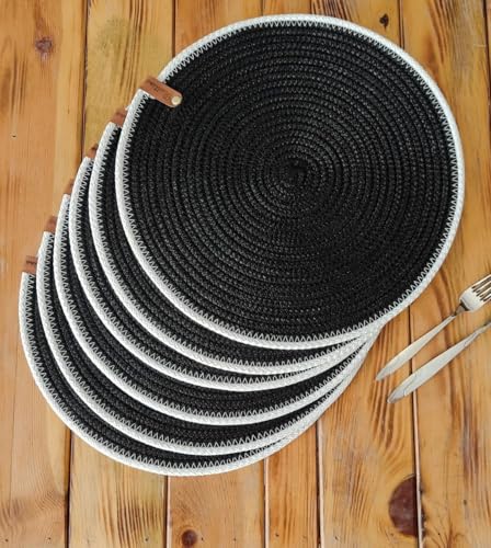Generic - مفرش دائري منسوج، قطر 35 سم، أسود وأبيض، قطعة واحدة