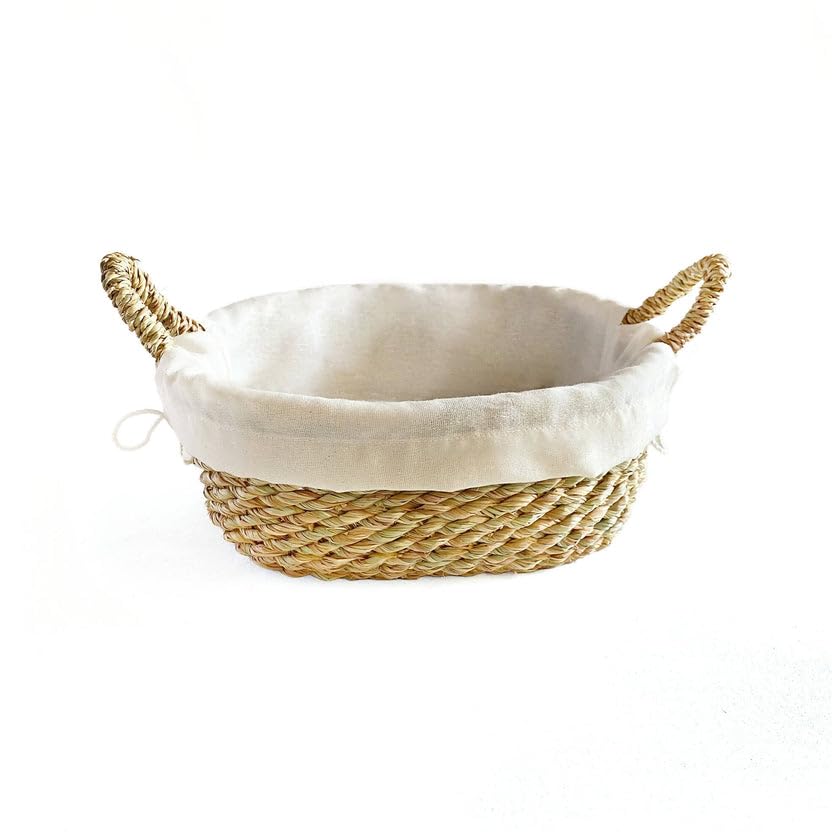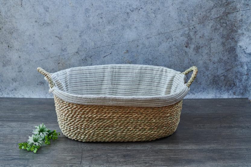Generic - سلة تخزين منسوجة من الاعشاب البحرية مع بطانة قطنية ومقابض بيضاوية الشكل (متر)