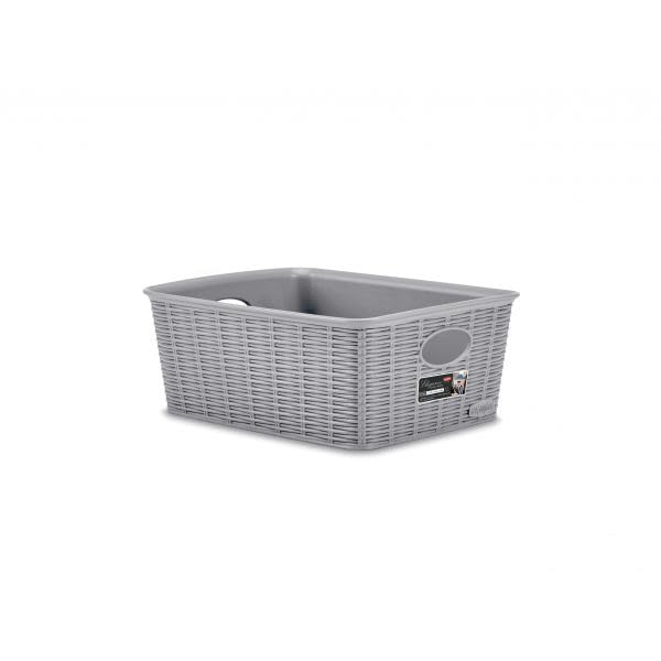 Generic - سلة تخزين منسوجة مع مقابض، تصميم راتان بلاستيك، رمادي، مقاس متوسط