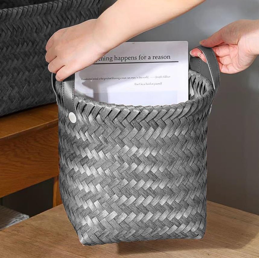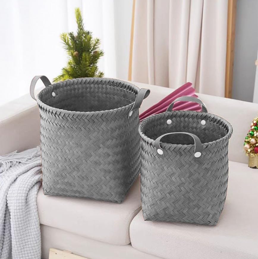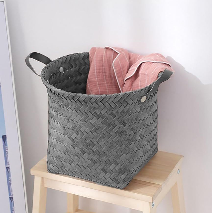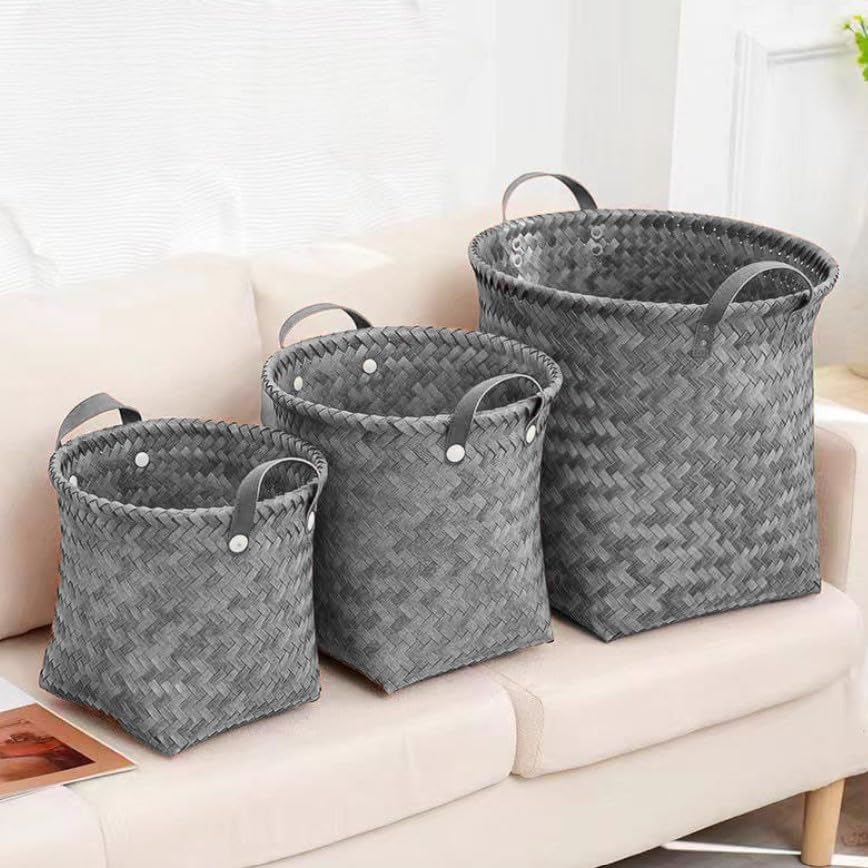 Generic - سلال تخزين منسوجة مع مقابض، مجموعة من 3 قطع، رمادي، منظمات متداخلة مزخرفة