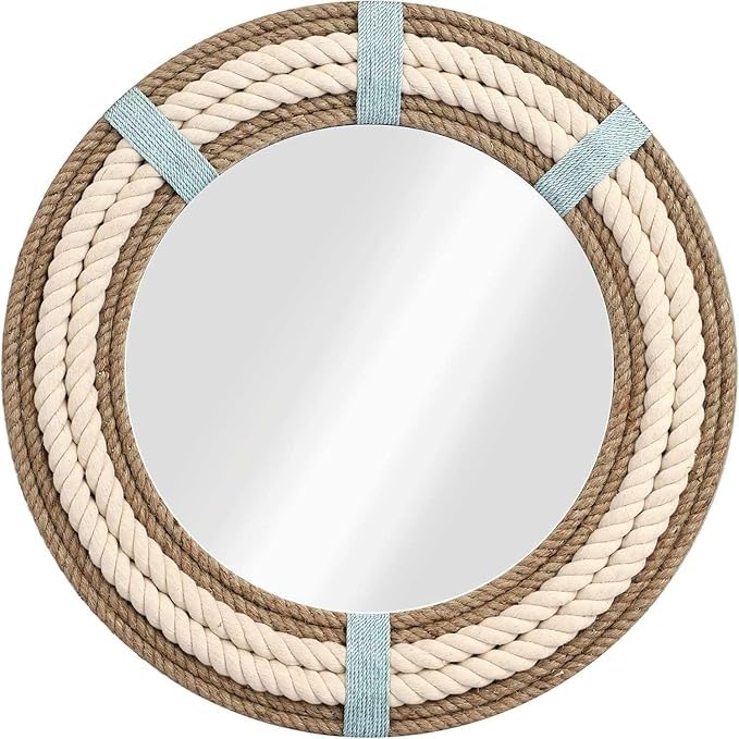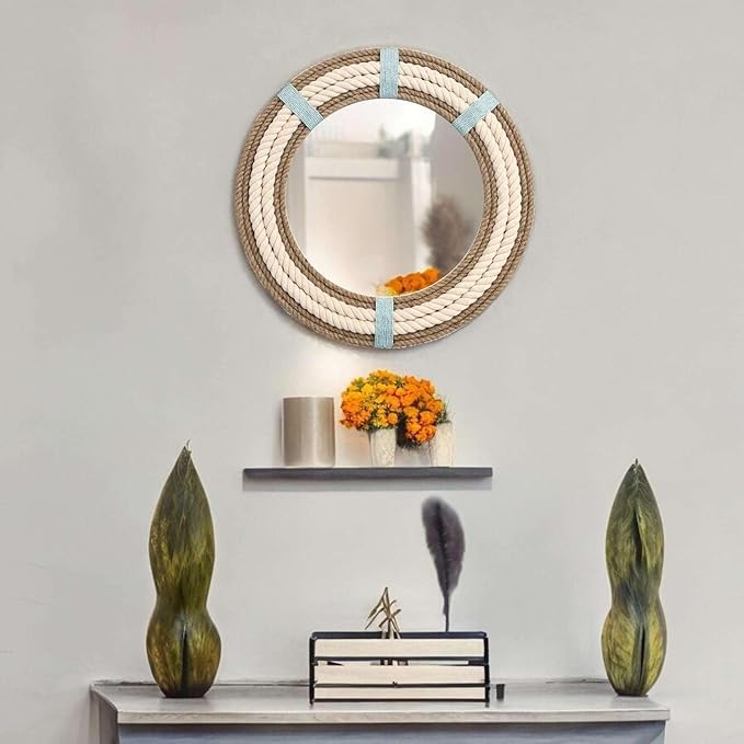 - تقنية التصنيع: هذه المرآة المزخرفة المعلقة على الحائط مصنوعة يدويًا عن طريق عقد الحبال .