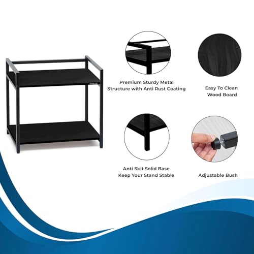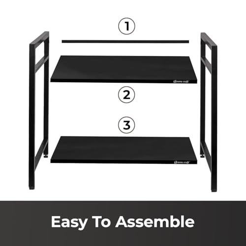 wow craft - رف قائم من طبقتين من واو كرافت، رف تخزين لسطح طاولة الحمام، رف اطباق لتنظيم المطبخ، رف مستحضرات التجميل | رف يثبت على الارض مصنوع من الخشب والمعدن المصمم هندسيا (اسود)