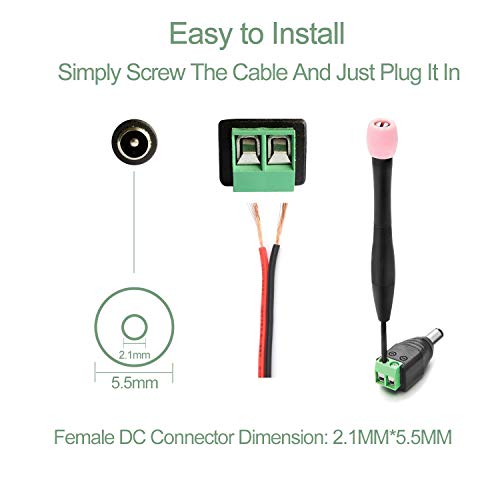 - ★[سهل التركيب للغاية] -- لا حاجة للقص واللحام لهذا الموصل من ذكر لأنثى مقاس 2.1 ملم × 5.5 ملم، كل ما تحتاجه فقط مفك مسامير صغير. سهلة التوصيل للكاميرا، تركيب شرائط LED، توفير الوقت واتصال بكابل أكثر أمناً. يتمتّع بخاصية التوصيل والتشغيل.