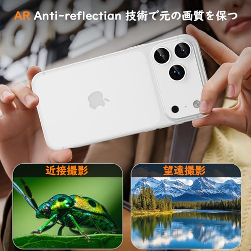 - (الجيل الثالث إصدار محسن، حماية كاملة) يستخدم غشاء حماية كاميرا ايفون 17 برو ماكس زجاج مقوى بدرجة صلابة 9 وخليط معدني من الألومنيوم، مع تصميم هيكل مدمج، وهو أكثر حماية بكثير من المنتجات التقليدية. بالإضافة إلى ذلك، يضمن التصميم الخاص المقاوم للكسر سلامة عالية دون أن ينكسر إذا انكسر الزجاج بسبب التأثير القوي