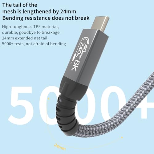 - USB4.0 أقصى معدل نقل البيانات 40 جيجابايت في الثانية: يمكن لكيبل USB4 هذا الوصول إلى معدل نقل البيانات حتى 40 جيجابايت في الثانية، وسرعة الإرسال أسرع مرتين من ثاندربولت 3. عندما تقوم بنقل البيانات، تحتاج معدات نقل البيانات الخاصة بك إلى دعم 40 جيجابايت في الثانية، ويمكن أن تصل بياناتك إلى 40 جيجابايت في الثانية، وإلا لن يتم الوصول إلى معدل نقل البيانات