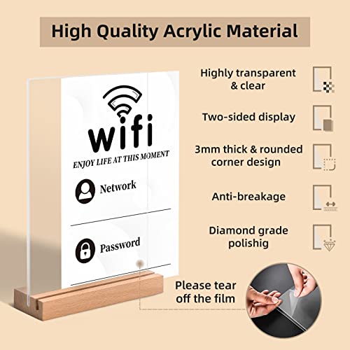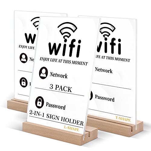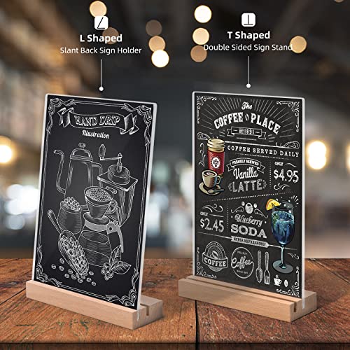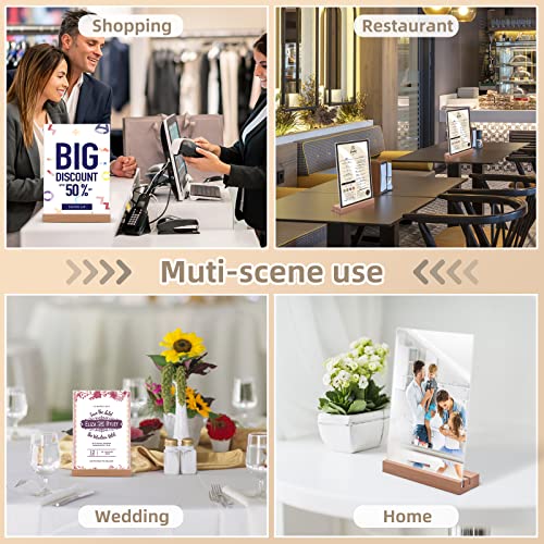 WQSS AOEIU - حامل لافتات 2 × 1 من الاكريليك مقاس 5×7 على شكل حرف T وتصميم بظهر مائل لعرض الورق مع قاعدة خشبية، حامل نشرات للمكاتب والفنادق والمطاعم والمتاجر