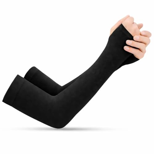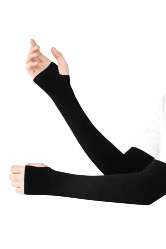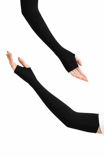 Generic - أكمام ذراع معصم يد معصم ذراع طويلة للمحجبات، أسود، قطن وبوليستر وسبانديكس، مقاس واحد، بفتحة إبهام، 2 قطعة، للاسدال و العبايات و الملحفه و الخمار مناسب للخروج و الاستقبال ومناسب للصلاه