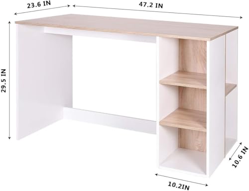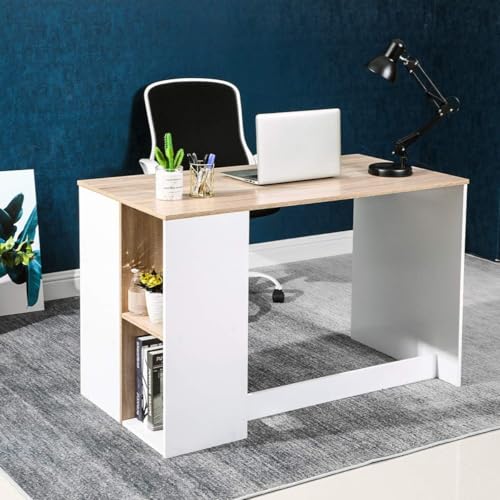 - 【تخزين مكتب كمبيوتر مكتبي】- [مساحة تخزين متكاملة] - ألواح خشب ليفي متوسط الكثافة صلبة مع لمسة نهائية ثنائية اللون، مكتب كمبيوتر مريح وموفر للمساحة مع تصميم جميل من خشب البلوط الأبيض والبلوط لتكامل مثالي مع بيئة غرفتك.
