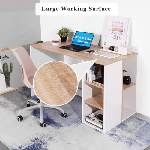 Coavas - مكتب كمبيوتر للكتابة مع وحدات تخزين، مكتب دراسة كبير بخمسة أرفف، طاولة كمبيوتر خشبية للمكتب المنزلي