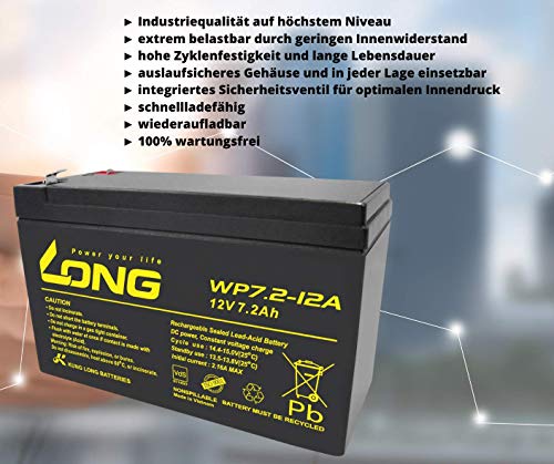 - 1 × بطارية كونغ لونج في دي اس ايه جي ام WP7.2-12، 12 فولت، 7.2 امبير في الساعة، 6.3 ملم فاستون