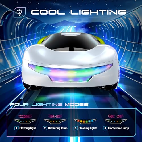 WSHIMIN - سيارة مستقبلية بهلوانية بجهاز تحكم ومستشعر ايماءات مع رذاذ خفيف وصوت، لعبة سيارات تعمل بجهاز تحكم 360° 2.4GHz للأولاد من 8 إلى 12 سنة لعيد ميلاد للأطفال من وشيمين، لون أخضر