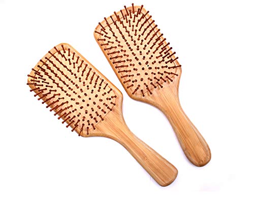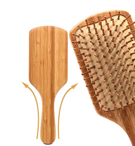 WSLCN - فرشاة شعر WSLCN فرشاة شعر مجداف من الخيزران الطبيعي لتدليك فروة الرأس ، ومشط شعر مبطن مضاد للكهرباء الساكنة بشعيرات ذات رؤوس كروية (مربعة)