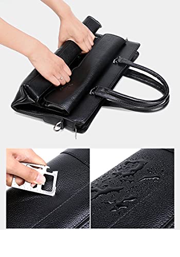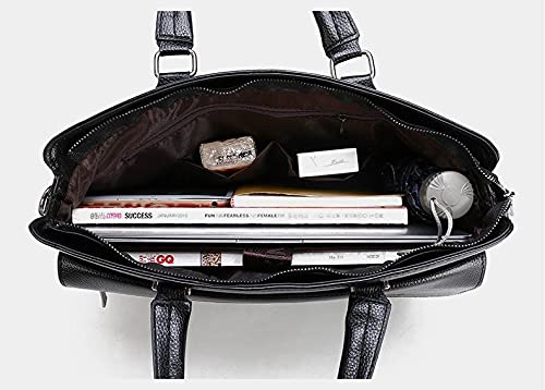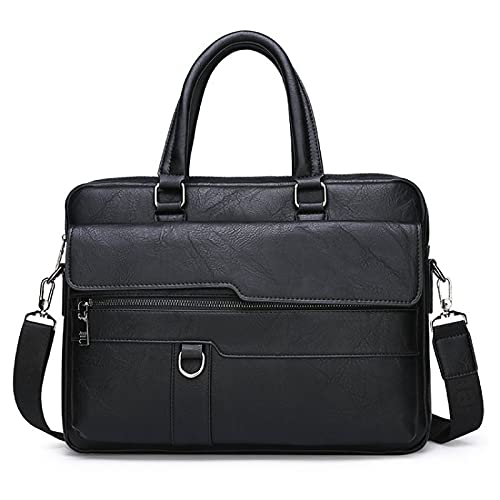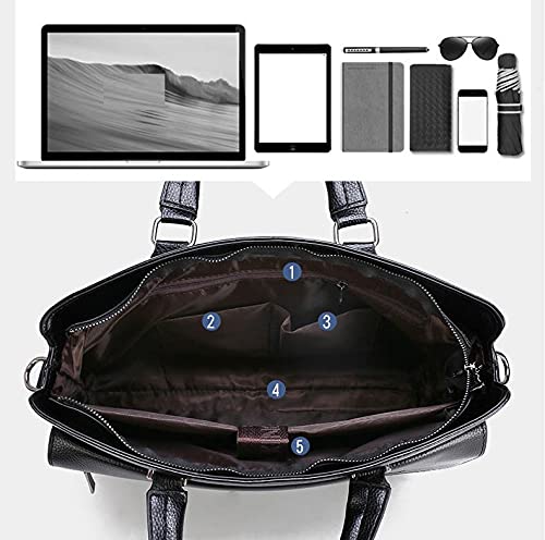 WSLCN - حقيبة عمل ساتشل جلد صناعي بحزام للكتف مناسبة للاب توب 14 بوصة للرجال من دبليو اس ال سي ان, أسود, 38*29*6cm