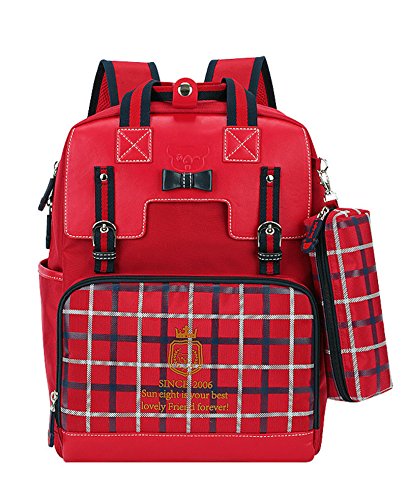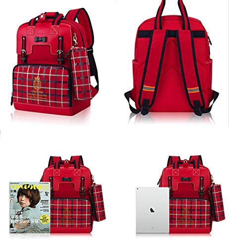 WSLCN - شنطة ظهر مدرسية مع اقلام رصاص كاجوال للبنات المراهقات احمر مقاس واحد من WSLCN .