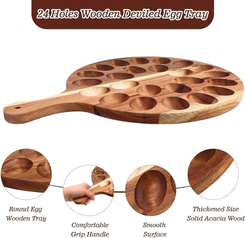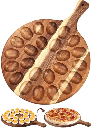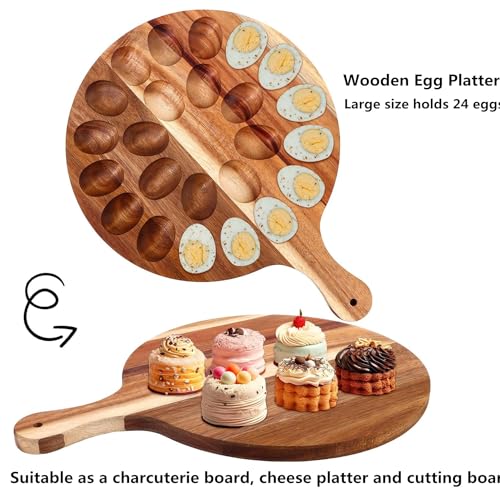 Wsobue - طبق تقديم البيض المحشو، صينية من الخشب للبيض المحشو بـ 24 فتحة دائرية قابلة للعكس، لوح تقديم للمقبلات أو البيض المكثف لسطح الطاولة لعيد الفصح والكريسماس والمطبخ من دابليو اس او بي يو (دائري-24 فتحة)