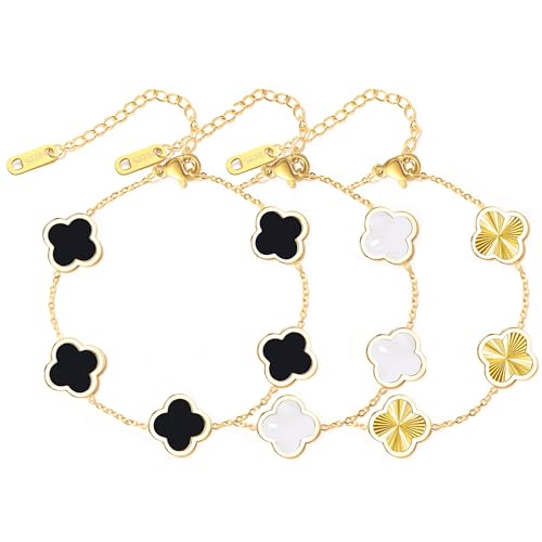 WSupikio - مجموعة اساور برسيم من 3 قطع مطلية بالذهب عيار 18 قيراط للنساء من دبليو سوبيكيو، اساور بحلقات قابلة للتعديل، مجوهرات ذهبية لطيفة