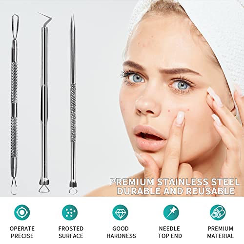 WSYUB - أداة استخراج البثور من الفولاذ المقاوم للصدأ من دبليو اس واي يو بي، ملقاط للرؤوس السوداء، مجموعة إزالة حب الشباب كوميدونيس للعيوب، فرقع الرؤوس البيضاء