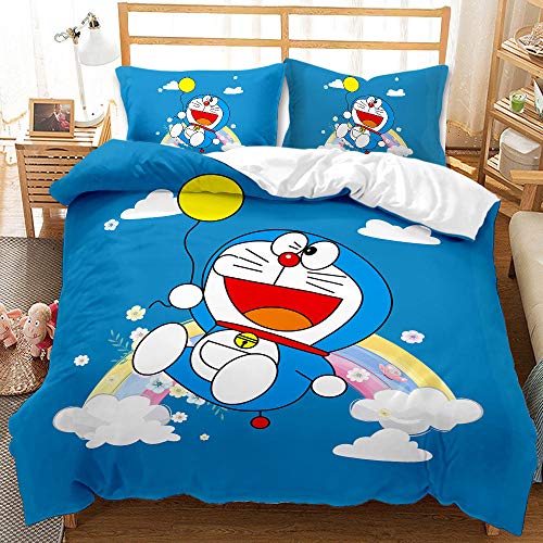 WTBDWOSF - غطاء لحاف من مايكروفايبر فائق النعومة ولا يسبب الحساسية بنقشة شخصيات أنيمي كرتونية وتوبدووسف® طقم ملاءة سرير 1 و2 كيس مخدة مطبوع ثلاثي الأبعاد بجودة فندقية مقاوم للتجعد والبهتان
