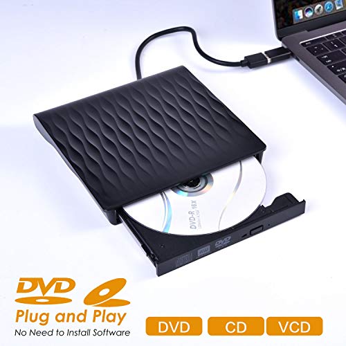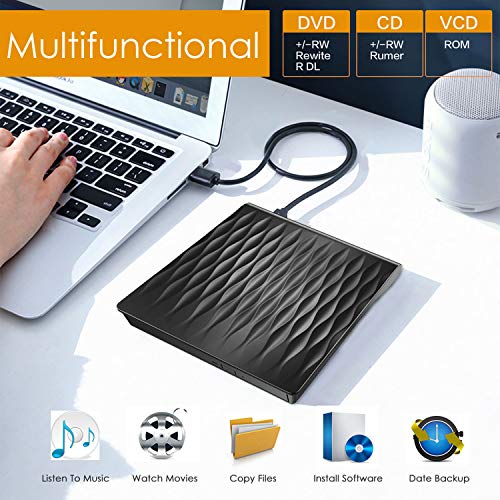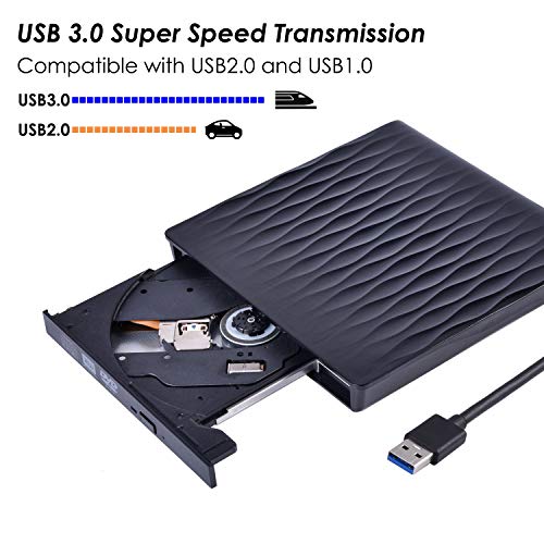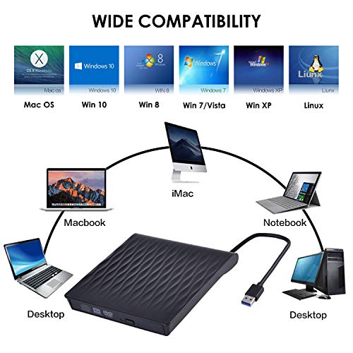 WTONG BeovFiw - مشغل وناسخ اقراص CD/DVD وذاكرة ROM خارجي رفيع محمول بمنفذ USB 3.0 متوافق مع اجهزة لاب توب وكمبيوتر مكتبي بنظام تشغيل ويندوز وLinux وماك من وي تونج، اسود