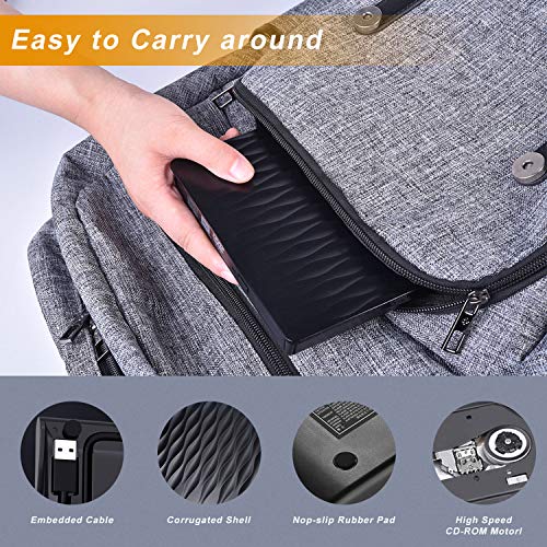 - محمول ونحيف: محرك الأقراص المضغوطة الخارجي من وتونج نحيف للغاية وخفيف الوزن وسهل الاستخدام والحمل والتخزين.