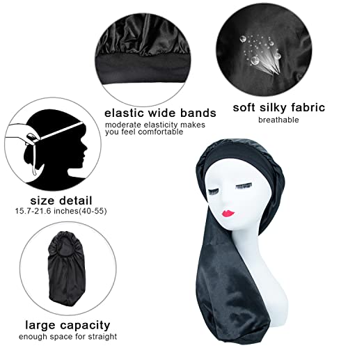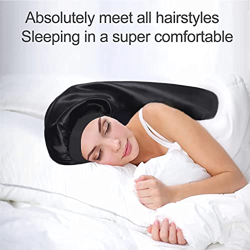 WUBAYI - بونيه من ووباي باللون الأسود مصنوع من الساتان والحرير للنساء بتصميم مريح للنوم