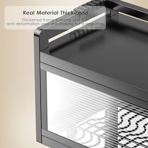 - حاجز حماية وباب علوي قلاب مقاوم للغبار: يتميز رف تجفيف الأطباق هذا بباب علوي قابل للفتح ومقاوم للغبار يحافظ على نظافة الأطباق من خلال منع تراكم الغبار والزيوت. الجزء العلوي مزود بحاجز مرتفع لمنع سقوط الأغراض، كما أن القواعد اللاصقة القوية في القاعدة تحمي الرف من الاهتزاز أو الانقلاب.
