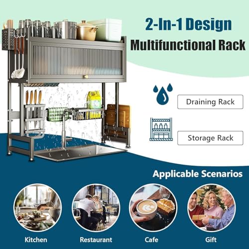 - هيكل صلب فاخر: مصنوع من صلب كربوني عالي الجودة، هذا الرف لتجفيف الأطباق متين وسميك، ويوفر قدرة تحمل قوية لاستخدام طويل الأمد.