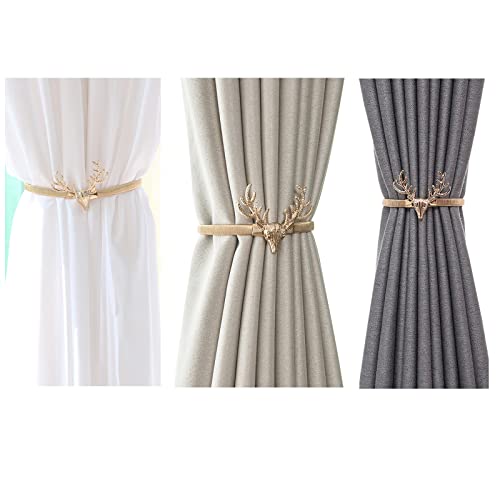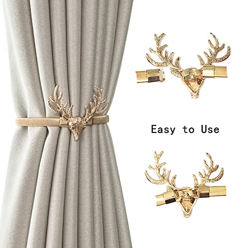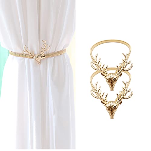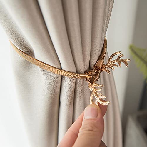 wufawutian - أربطة ستائر بتصميم زنبركي من خليط الألومنيوم، تصميم قرون الأيائل مناسبة لأي موسم خاصة الكريسماس، قطعتان من أربطة الستائر (تصميم قرون الأيائل) من ووفاووتيان