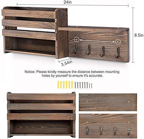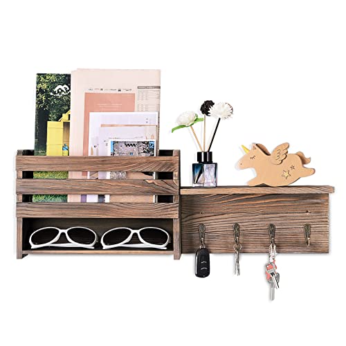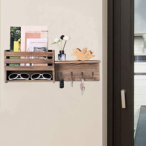 WuGeShop - حامل مفاتيح للحائط رف بريد خشبي للمفاتيح مع 4 خطافات شماعات خشبية تثبت على الحائط منظم للمدخل والرواق من وجي شوب