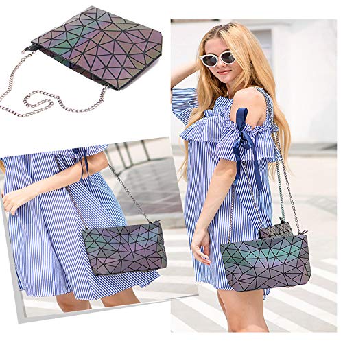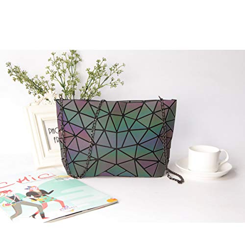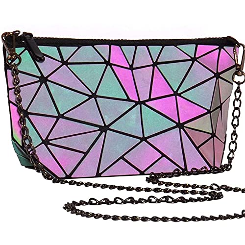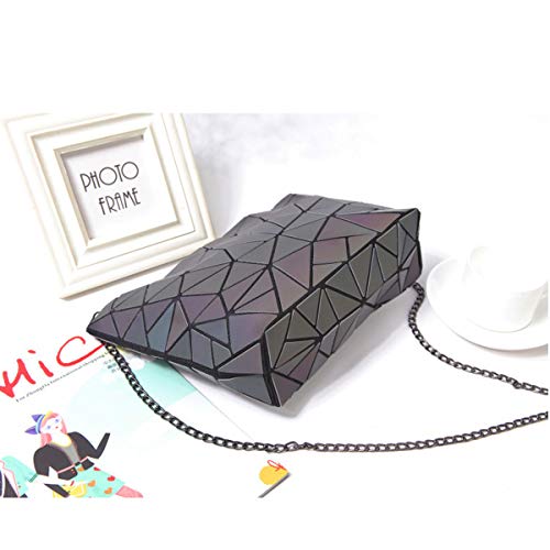 WUIOS - محفظة بتصميم هندسي ثلاثي الابعاد للنساء شنطة هالوين سحرية مضيئة كتف كروس مع سلسلة بلون اسود غامق مقاس M