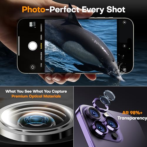 - [واقيات عدسات فردية معدنية HD عالية الدقة] متوافقة مع ايفون 16 برو ماكس/16 برو/15 برو ماكس/15 برو/14 برو ماكس/14 برو. حماية معززة ولا تسقط أبدًا. يوفر مزيج المعدن وزجاج سافاير بنسبة نفاذية 99% حماية من جميع زوايا الصدمات ومشاكل التشقق. تُظهر تقنية الطلاء الكهربائي AF بالزيت عرض الصور التليفوتوغرافية والماكرو بألوانها الأصلية.