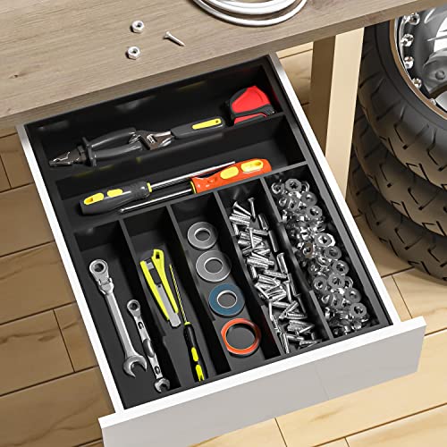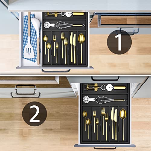WUSHIZHUHUN - منظم أواني ودرج أدوات مائدة، صينية أدوات مائدة من البامبو بـ 7 فتحات للمطبخ والمستلزمات المكتبية وتخزين مكتب المكياج وتنظيم أدوات الجراج من وشيزوهون، عرض 33 سم × طول 43.18 سم (أسود)