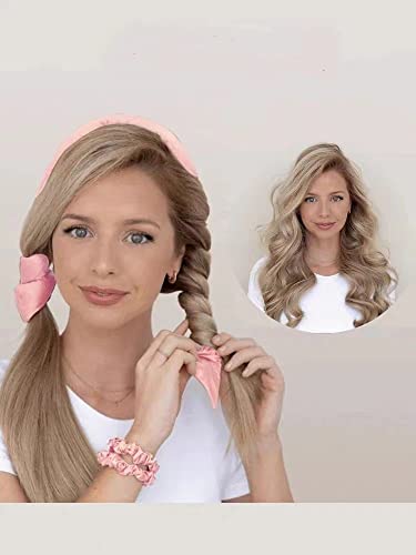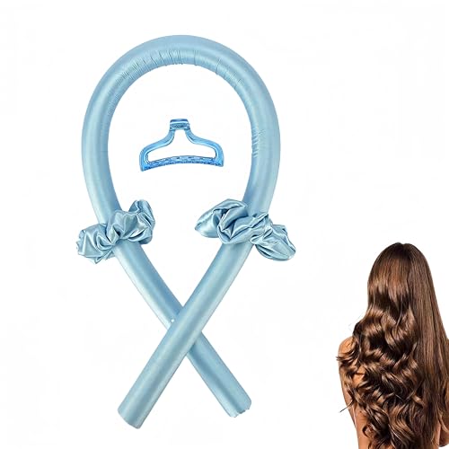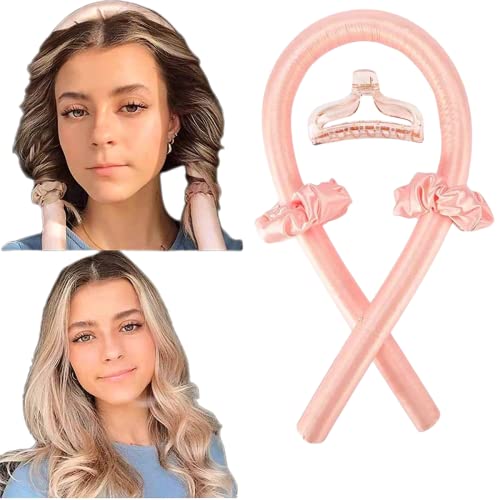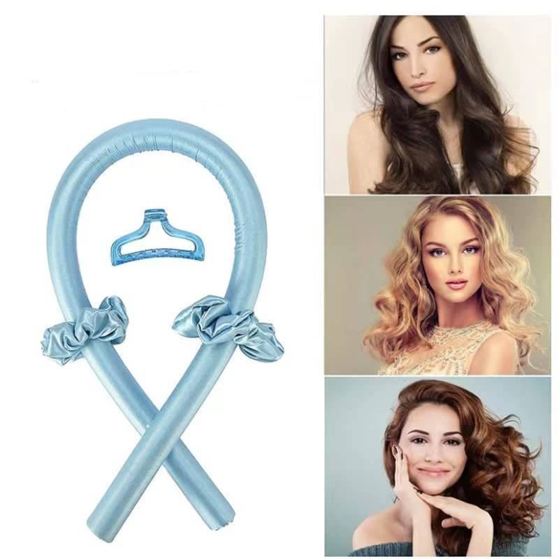 Wuyue Hua - طوق رأس لتجعيد الشعر بدون حرارة - مجموعة تمويج الشعر بدون حرارة من الساتان طوال الليل مع قضيب تجعيد، بدون تجعيدات حرارية، تجعيد الشعر بنمط حريري لتصفيف الشعر ذاتيًا