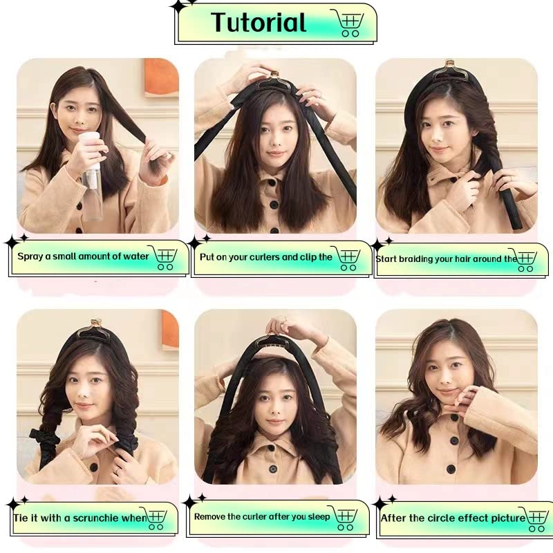 - [تصميم أنيق] يمكنك تمشيط شعرك قليلاً أولاً، ثم لفه بطوق تجعيد الشعر. اضبطي طوق الشعر المجعد غير الساخن للحصول على تصفيفة شعرك المجعد المفضلة.