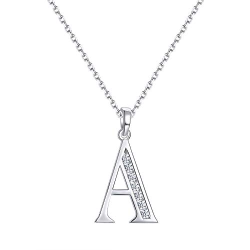 Wuziwen - قلادة على شكل حرف A بسلسلة فضة ستيرلينج 925 من حجر مكعب زركونيا 5A للنساء وزيوين