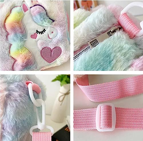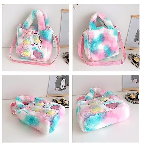 WVHTHVW - شنطة ظهر قطيفة للبنات الصغيرات، شنطة ظهر مخملية صغيرة منفوشة بتصميم حيوانات كرتونية لطيفة كاواي، شنطة يد للبنات الصغيرات للسفر والكتف والسفر والمدرسة بالوان قوس قزح (ازرق) مقاس S