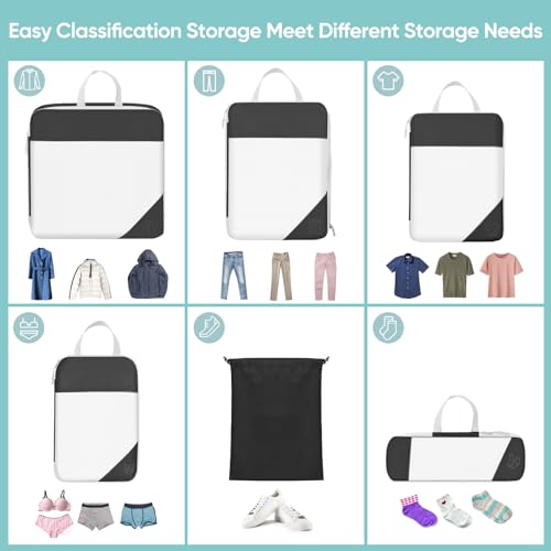 - 【رفيق جيد للخروج】تتضمن مجموعة مكعبات التعبئة الجديدة المكونة من 6 قطع للحمل في حقيبة السفر 5 عبوات من أكياس الضغط للسفر وحقيبة غسيل بأحجام مختلفة، قم بتعبئة ملابسك بشكل منفصل، مثل التيشيرتات والقمصان والسترات والسراويل والملابس الداخلية والمناشف والجوارب في مكعبات تعبئة مختلفة لسهولة الوصول إليها. يمكن لمنظمات التعبئة والتغليف للسفر أن تحزم أمتعتك بشكل مثالي، مما يلبي احتياجات التعبئة الخاصة بك لرحلة جيدة.