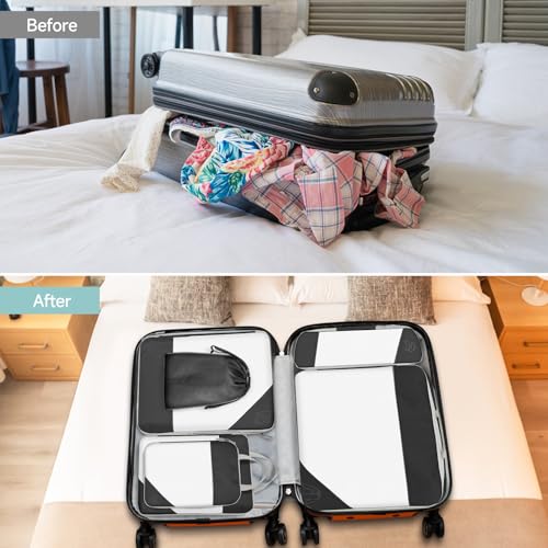 WVLIROD - مجموعة مكعبات منظمة للسفر لتنظيم شنط السفر مكونة من 6 قطع قابلة للتوسيع الأمتعة وحزم فرز الملابس وتنظيم - لون أسود دبليو في ال آي ار أو دي البوليستر