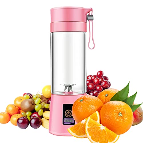 wyewye - خلاط شخصي كهربائي محمول قابل لإعادة الشحن بمنفذ USB و6 شفرات ثلاثية الأبعاد لخلط قوي سعة 380 مل، مناسب لصنع السموذي والعصائر الطازجة، وردي، من واي وي، 30.0 واط