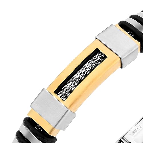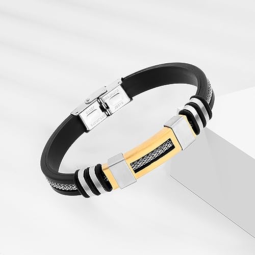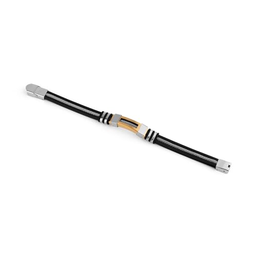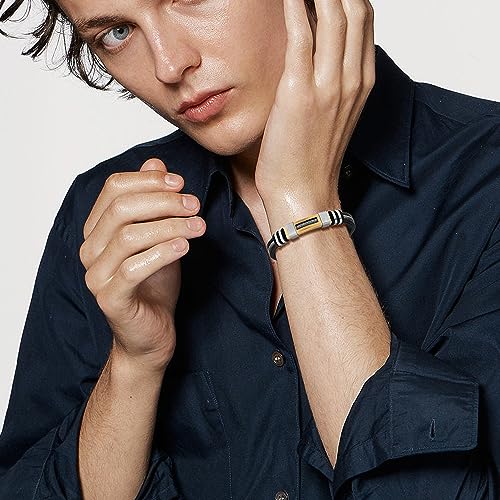 wynameleri - سوار جلد اسود للرجال من الستانلس ستيل في صندوق هدايا من ويناميليري