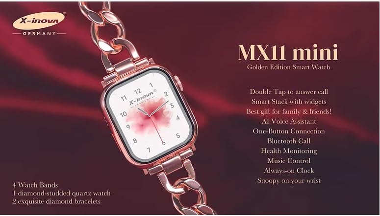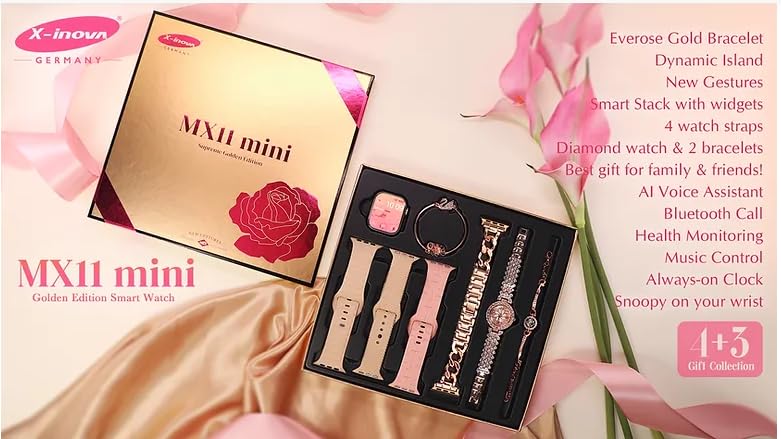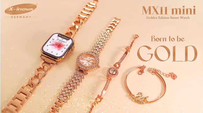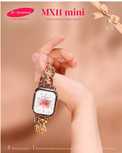 X-Inova Germany - ساعة ذكية صغيرة من اكس-انوفا جيرماني MX11 مقاس 41 ملم 4 اساور ماسية بسوارين - اصدار ذهبي