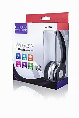 X-Loud - سماعة للراس بلوتوث H150 من اكس لاود مزودة بميكروفون وبطاقة اس دي وراديو اف ام- اسود، فوق الاذن