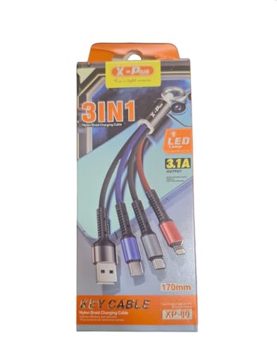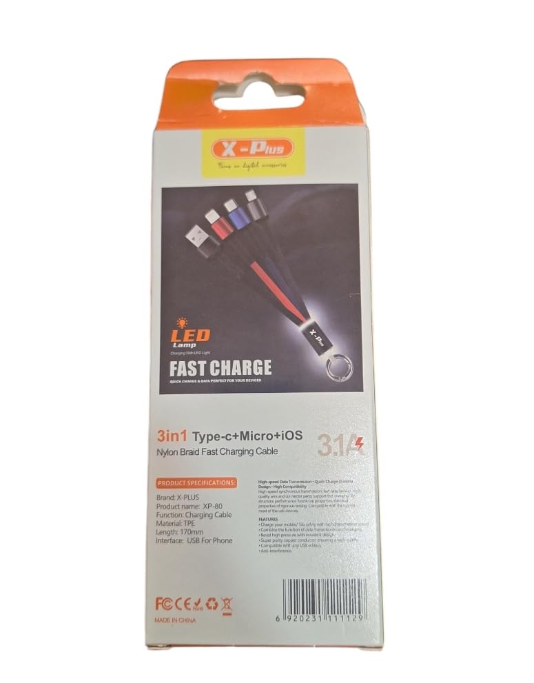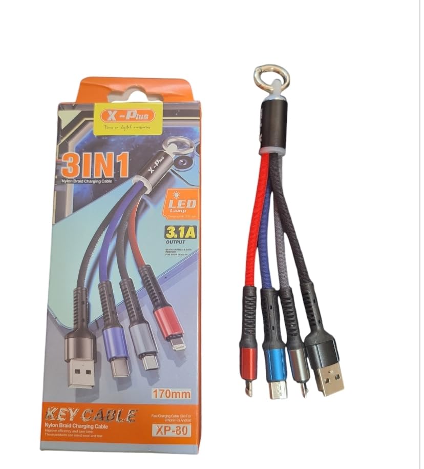 - كابل شحن سريع متعدد الوظائف 3 في 1 مضفر من النايلون، مزود بموصل Micro USB والنوع ال، يدعم الشحن السريع من اكس - بلس.