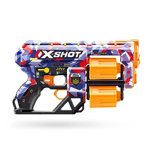 • سعة السهام: تحتوي لعبة مسدس السهام سكينز دريد من اكس-شوت على أسطوانات دوارة مزدوجة بسعة 12 سهمًا. عندما تنفد السهام في أسطوانة واحدة، ما عليك سوى التبديل إلى الأسطوانة الثانية لاستكمال المنافسة!