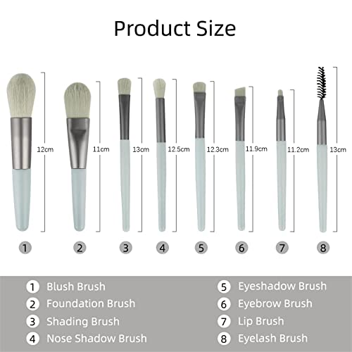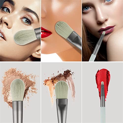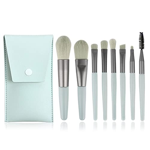 X spring - مجموعة فرش مكياج من اكس سبرينج، 8 قطع من فرش مستحضرات التجميل للسفر مع شنطة من البولي يوريثين، صغيرة الحجم محمولة ناعمة لوضع كريم الأساس وظلال العيون ومكياج الوجه والشفاه للبنات والنساء (رمادي أخضر)