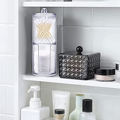 X spring - موزع حامل أعواد القطن برطمان تخزين للحمام مع غطاء قابل للتكديس منظم تخزين للحمام لأعواد القطن والوسادات القطنية الدائرية وأعواد تنظيف الاسنان من اكس سبرينج عبوة من قطعتين