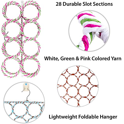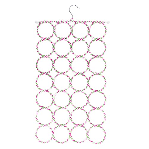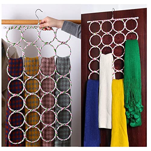 X spring - شماعة أوشحة من اكس سبرينج قابلة للطي مزودة بـ28 فتحة دائرية، شماعة خزانة موفرة للمساحة، منظم للأوشحة وربطات العنق والأحزمة والشرابات للمنزل وغرفة النوم والحمام وغرفة المعيشة (لون عشوائي)