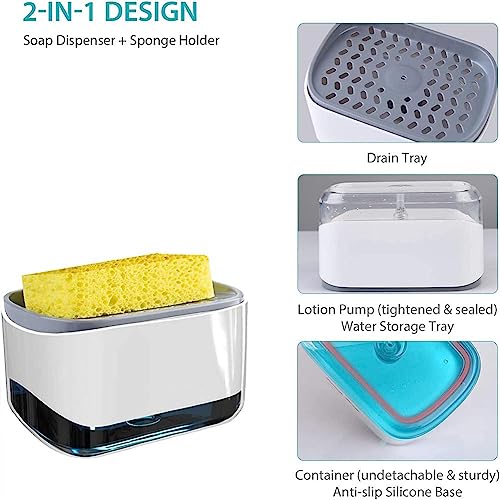 X spring - موزع صابون بمضخة وحامل إسفنجة، موزع صابون أطباق 2 في 1، موزع صابون أطباق 350 مل للمطبخ، ادوات مطبخ ذكية لتنظيم سطح الحوض من اكس سبرينج، لون أبيض